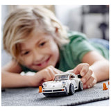 • The white, buildable 1974 Porsche 911 Turbo 3.0 toy car for kids features a minifigure cockpit with removable windshield, wheels with rubber racing tires and authentic design details such as the 911 Turbo's iconic ‘whale tail' rear spoiler.