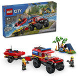 - Toy rescue vehicles playset – Double up the excitement with a fun combo of toy off-road fire rescue vehicles with this LEGO City 4x4 Fire Truck with Rescue Boat for ages 5 plus